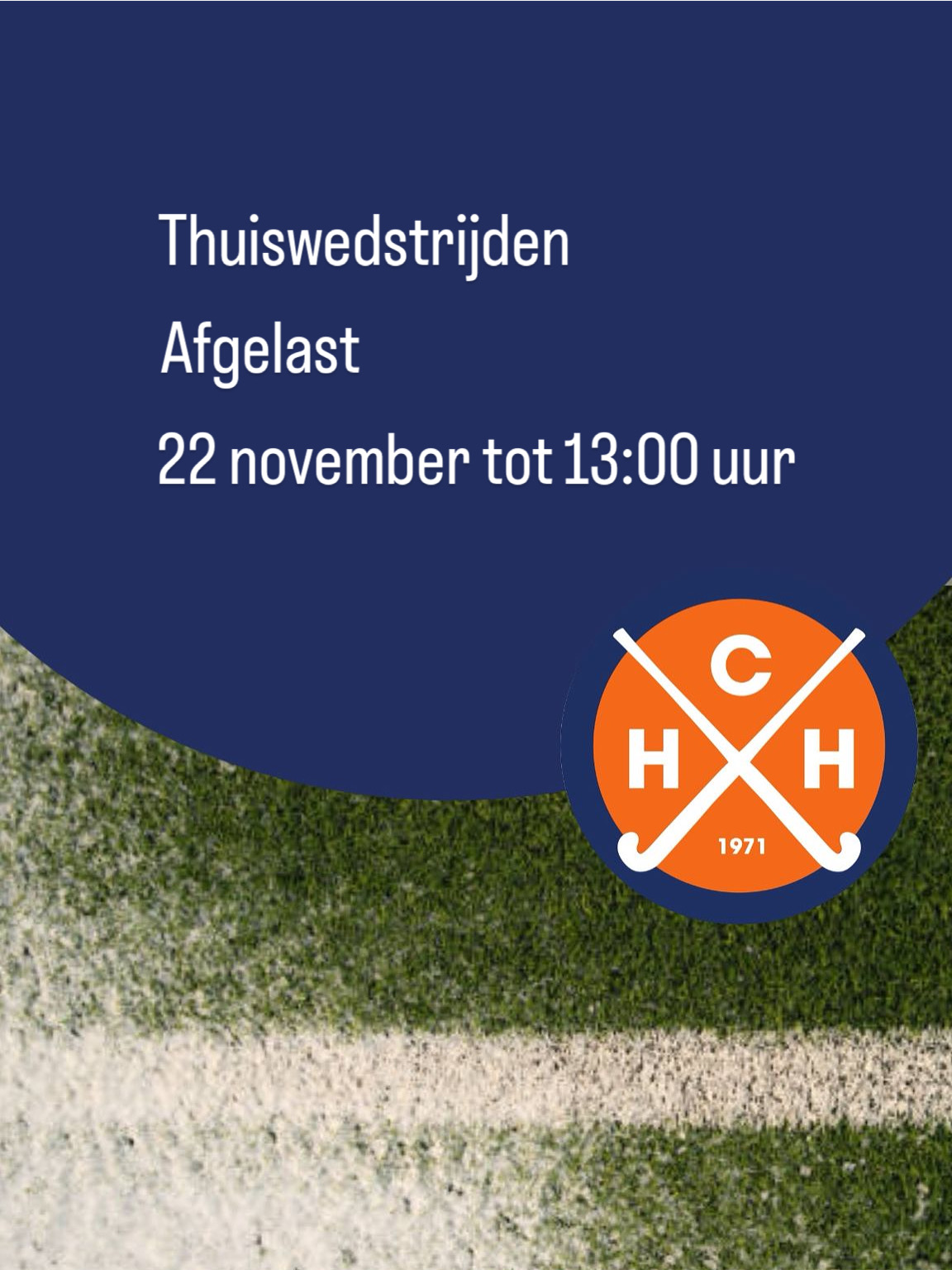 De thuiswedstrijden zijn tot 13:00 uur afgelast op zaterdag 22 november. Om 11:00 uur is de volgende veldkeuring voor de wedstrijden na 13:00u. Hou LISA en onze socials in de gaten voor informatie.